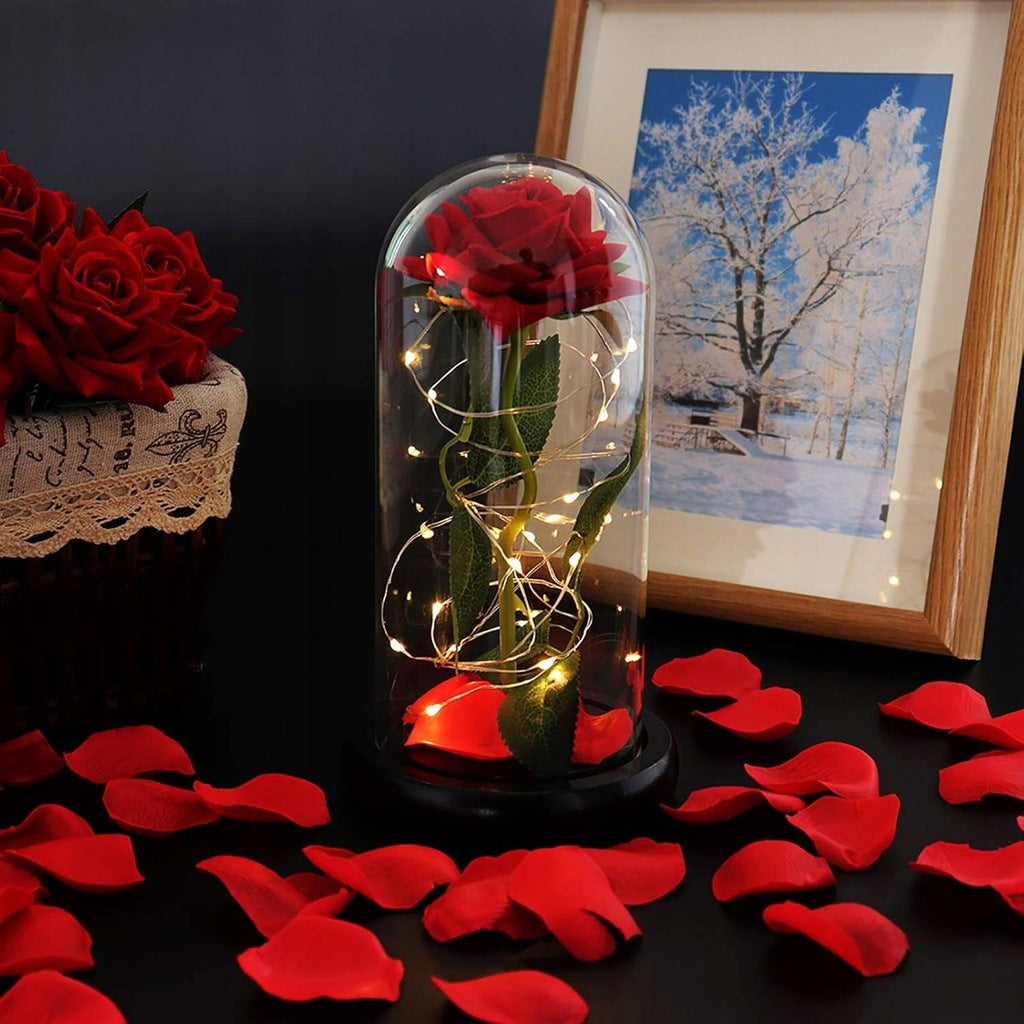 Odkryj wieczne róże w formie lampki, pod szkłem i eleganckich bukietów.